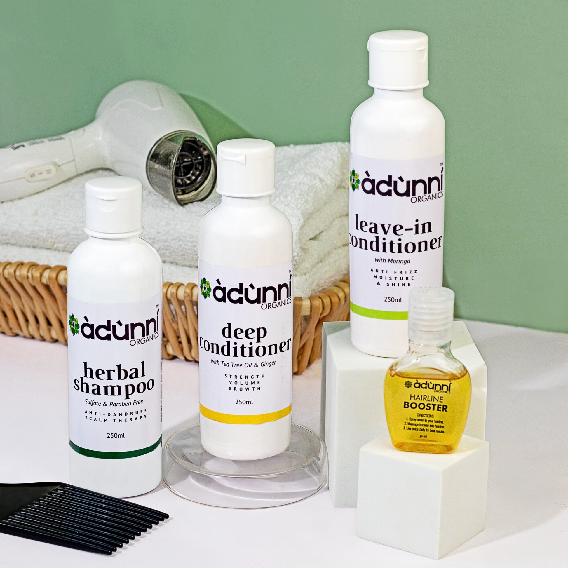 All of these and more have been expertly combined in Adunni Organics Hair Care Kit to give you products that your hair will love. Regular use for 6 to 8 weeks will give you the most beautiful hair you have ever had.